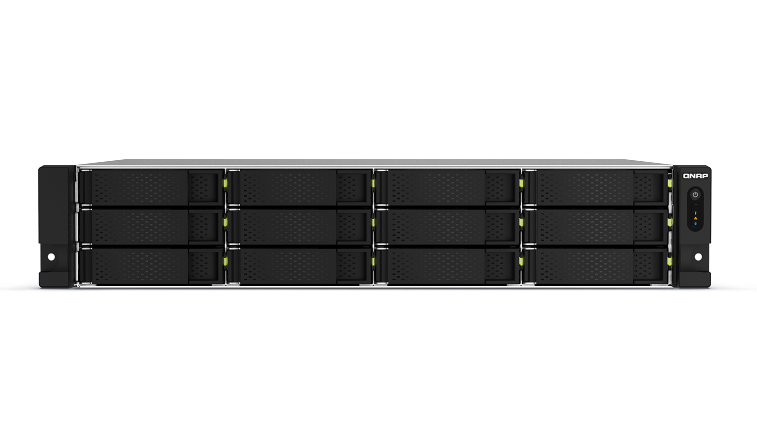 Servidor NAS QNAP TS-1264U-RP en formato rack 2U con 12 bahías, procesador Intel